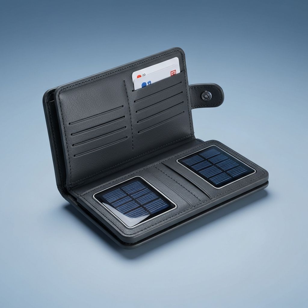 RFID-protected wallet with integrated solar charging. Never run out of power.